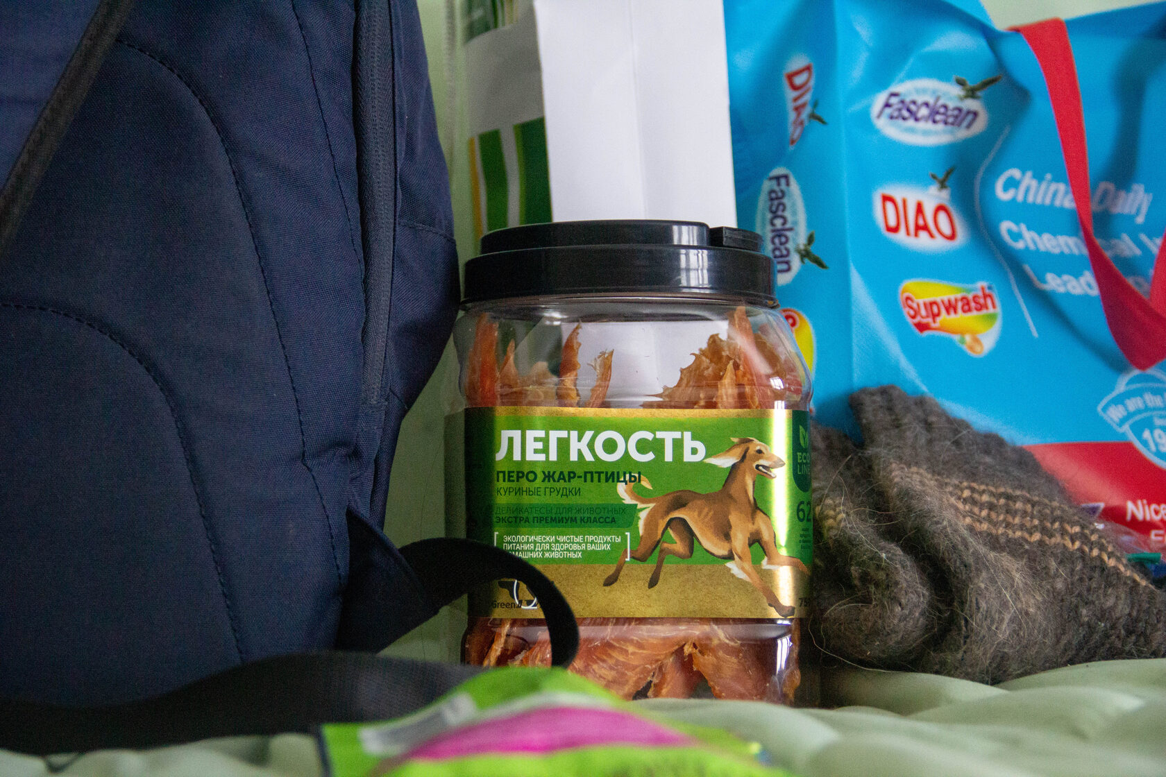 Александр: «У меня целые коробки запасы для Дуни: шоколад, консервы, косточки. Если он справляется со своей задачей, то получает вкусняшку. Стараюсь его баловать».